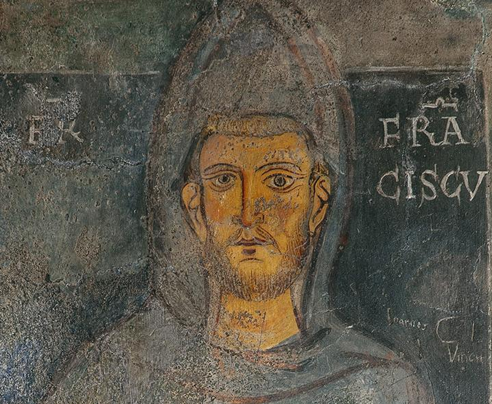 Un affresco nel monastero benedettino del Sacro Speco rivela il reale volto di San Francesco, senza l’aureola e con l’iscrizione “Frater Franciscum”.