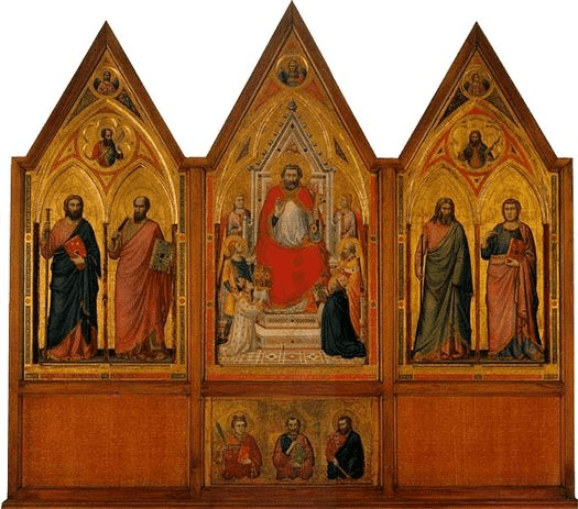 anteriore le figure più interessanti sono quelle di San Pietro e del cardinale Stefaneschi, che tiene in mano un modellino del trittico.